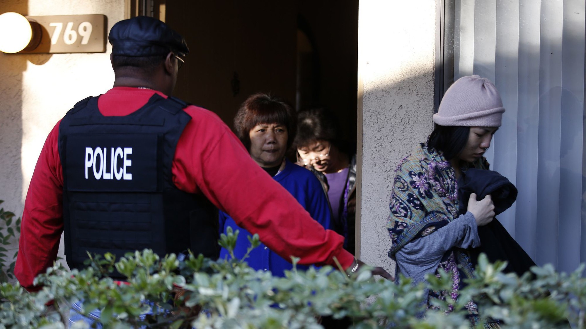 Các đặc vụ liên bang truy quét đường dây du lịch sinh con tại khu tổ hợp căn nhà hạng sang là nơi lưu trú của các thai phụ Trung Quốc ở Irvine, California - Ảnh: AP